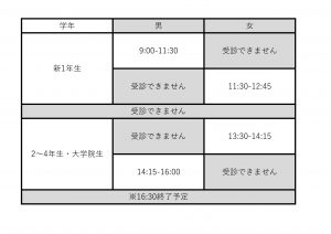 また学年ごとに検査項目が違いますので、スタッフの指示にしたがって移動してください。