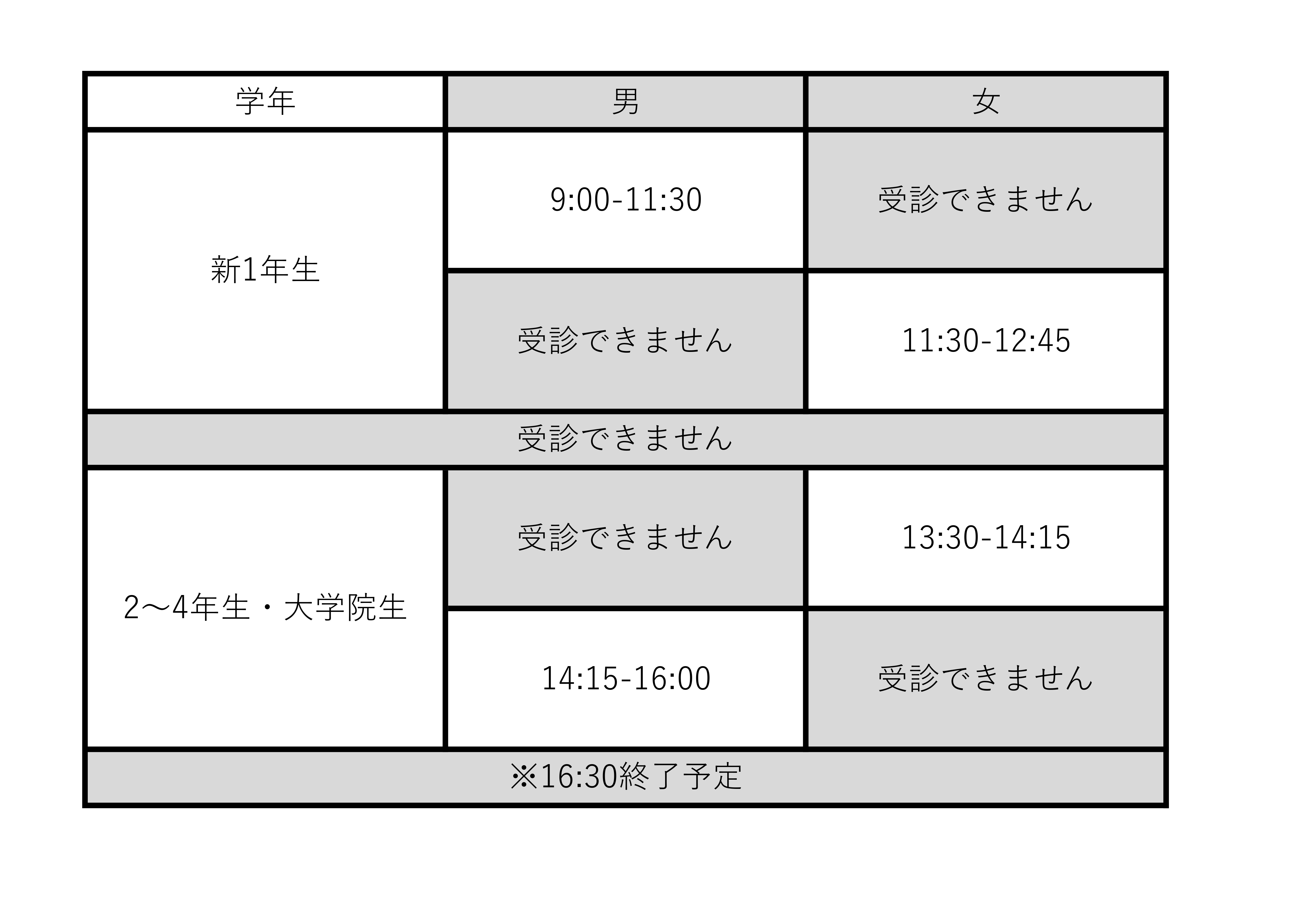 ・妊娠中あるいは妊娠の疑いのある学生は、胸部エックス線を受診することはできません。必ず受付でお申し出ください。