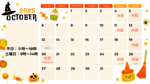 10月の休館日は、4,5,11,12、19、20、25、26日です!