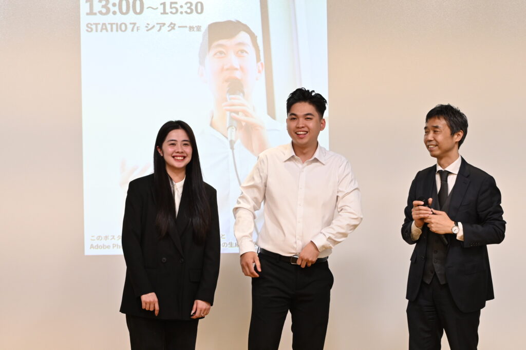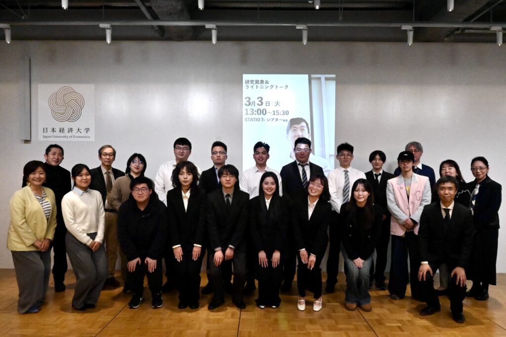 東京渋谷キャンパス 福島 綾一 教授 ゼミ主催の「研究発表会&ライトニングトーク」を、3月3日(火)に STATIO シアター教室にて開催しました。この取り組みは2年前に実施した「卒業研究発表会」を発展させたもので、今回はライトニングトーク(LT)との同時開催という新しい形に挑戦しました。(※ LTとは、全学年発表可能・テーマ自由・質疑応答なし・持ち時間5分という気軽なトークセッションです。)